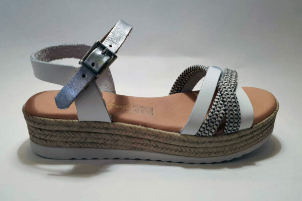 Sandalia mercedes con pala multi tiras combinada con doble piso y toda de piel de nuestra marca Zapaterías Key.